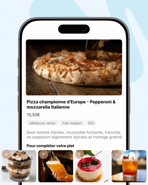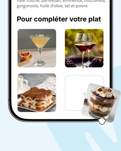 Incoraggia i tuoi clienti a spendere di più abbinando prodotti complementari ai tuoi piatti.