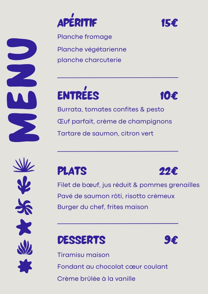 Gestisci una brasserie o offri cucina francese? Scopri questo magnifico esempio di menù per un ristorante tradizionale.